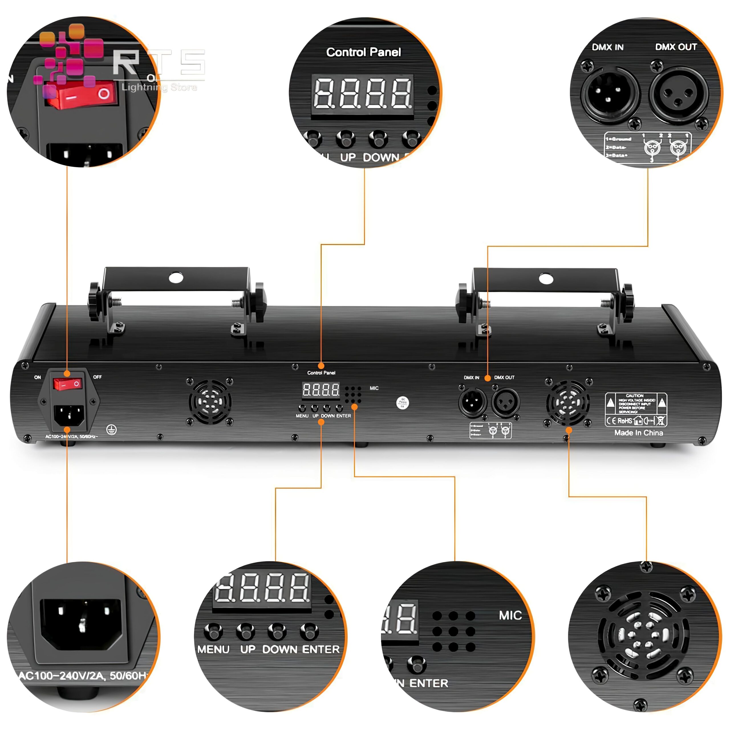 🔌 PROFESSIONAL DMX-512 CONTROL: Seamlessly integrate this unit into any professional DMX lighting setup for advanced programming and choreographed shows.
