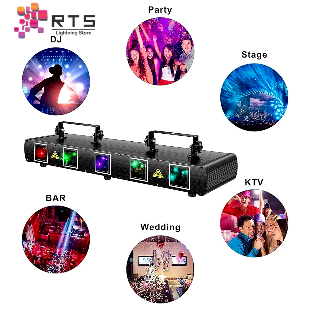 🌟 FIVE POWERFUL LASER HEADS: Dominate any venue with five independent RGB laser beams. Create massive, complex patterns and fill the entire space with dynamic light.
